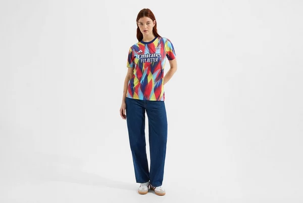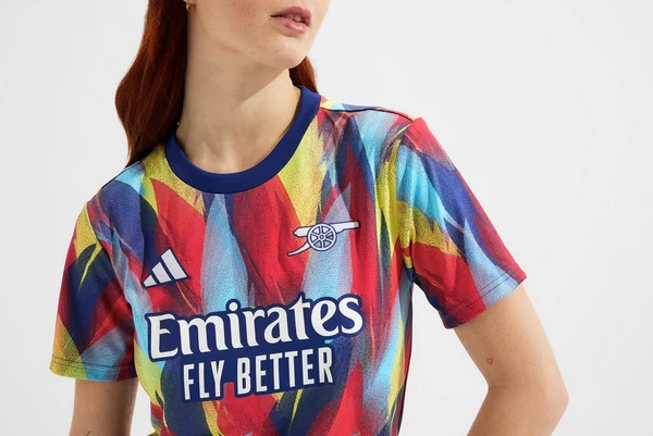 Decked in vibrant colours and carnival-inspired graphics, the Arsenal adidas Womens 25/26 Pre-Match Shirt will have you turn heads everywhere you go. The coolest thing you’ll ever wear this season, it comes with an embroidered cannon at chest, a classic ribbed crewneck, and adidas moisture-absorbing AEROREADY technology to keep you comfortable and confident in every crowd.